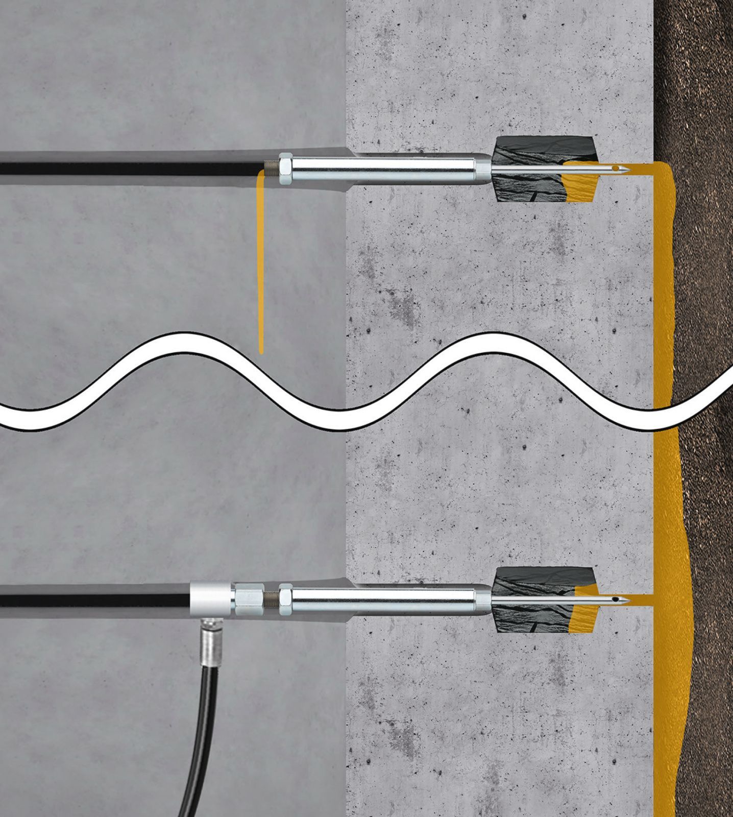 - Die B-STING® Fugeninjektionsnadel durchdringt das Dichtelement ohne Materialabtrag