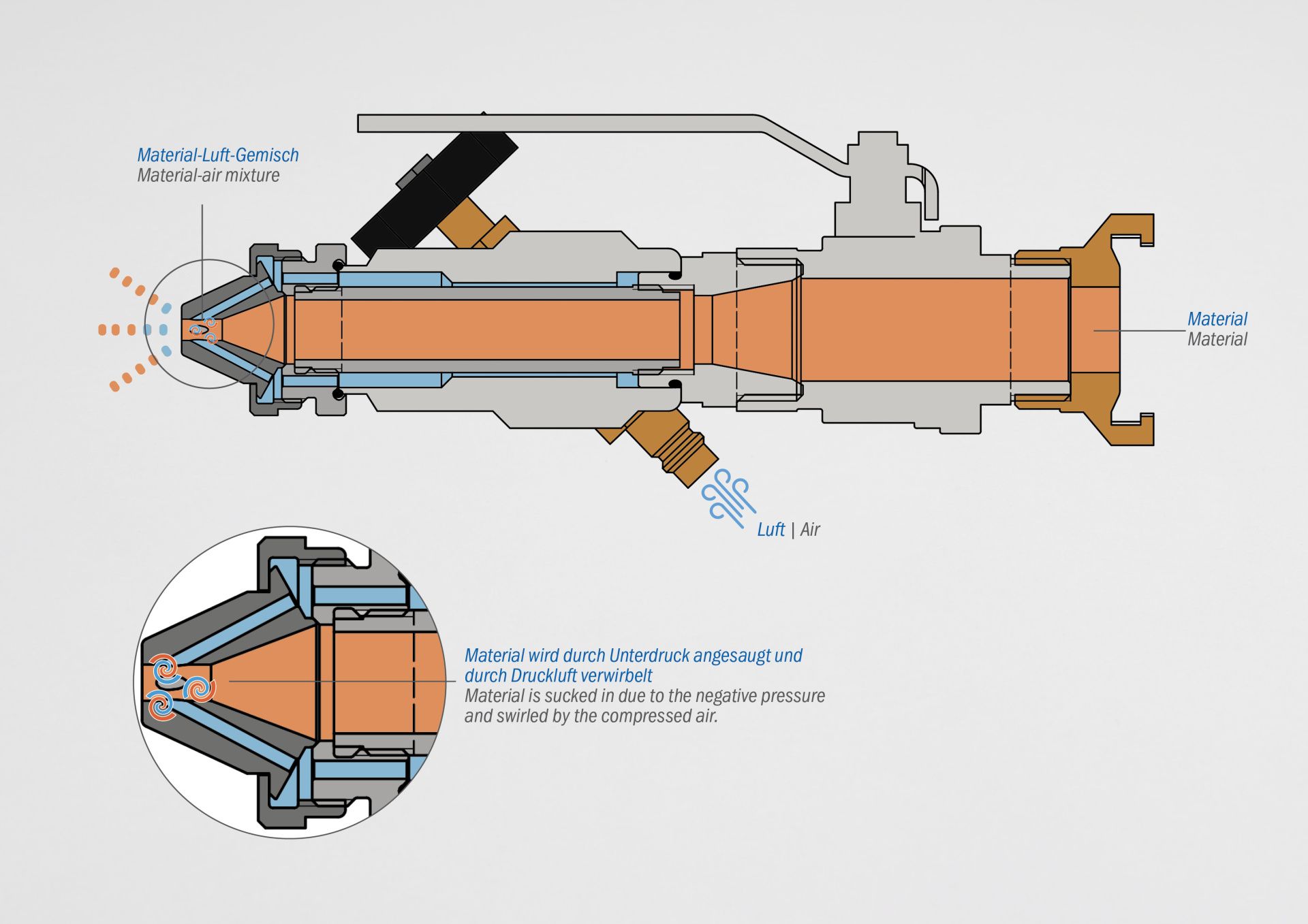 Kontrolliert fördert die Schneckenpumpe DESOI PowerInject SP20 das Material (Dichtschlämme) zum Spritzdüsenkopf/zur Spritzlanze. Die kontrollierte Förderung gewährleistet eine gleichmäßige Verteilung des Materials auf der zu schützenden Oberfläche und dadurch eine zuverlässige Abdichtung. Im Vergleich zu klassischen Abdichtungsverfahren wie Bitumenbahnen oder Abdichtungsfolien bietet das Spritzverfahren eine zeit- und materialeffiziente Lösung, insbesondere bei komplexen Geometrien wie Ecken, Kanten und unebenen Flächen.Die Kombination aus Equipment und Verfahren ermöglichen eine fachgerechte und effiziente Anwendung, die das Bauteil dauerhaft vor Feuchtigkeit schützt. Optional kann das benötigte Material je nach Anforderung geliefert werden.
