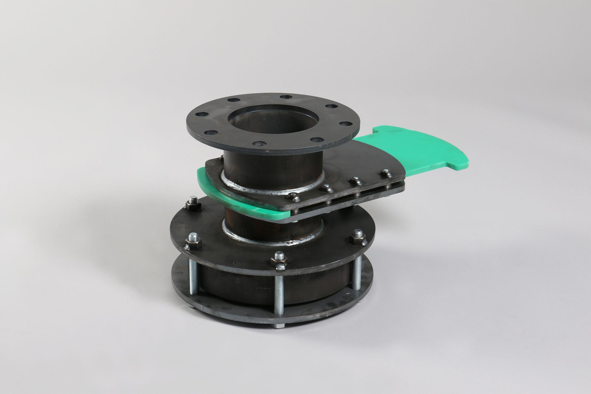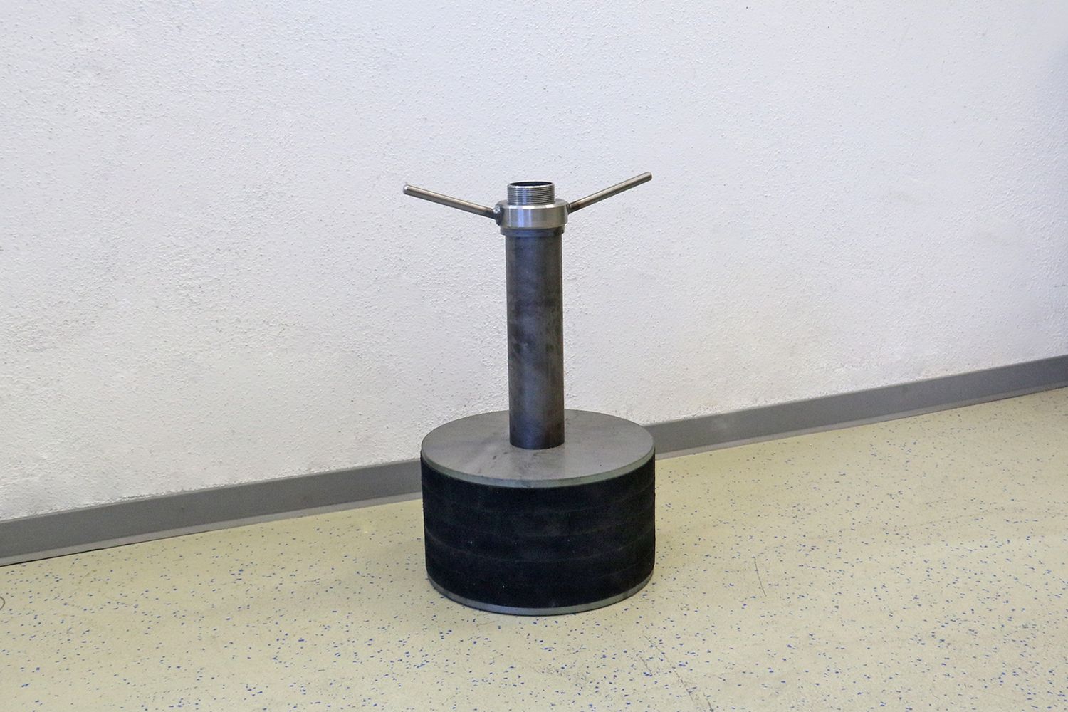 Der Preventer mit Schlagschieber dient zur Abdichtung eines Bohrrohres mit einem Außen-Ø von 120 mm. Er ist für einen Druckbereich von ca. 2 bar ausgelegt. Über einen Flansch wird der Preventer an ein Standrohr angeschlossen. Der Schlagschieber des Preventers dient als Verschluss.Sonderausführung - Einfach-Blähpacker Ø 131mm mit Entlüftung