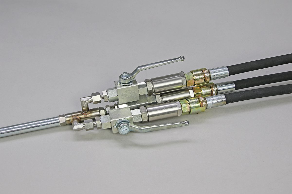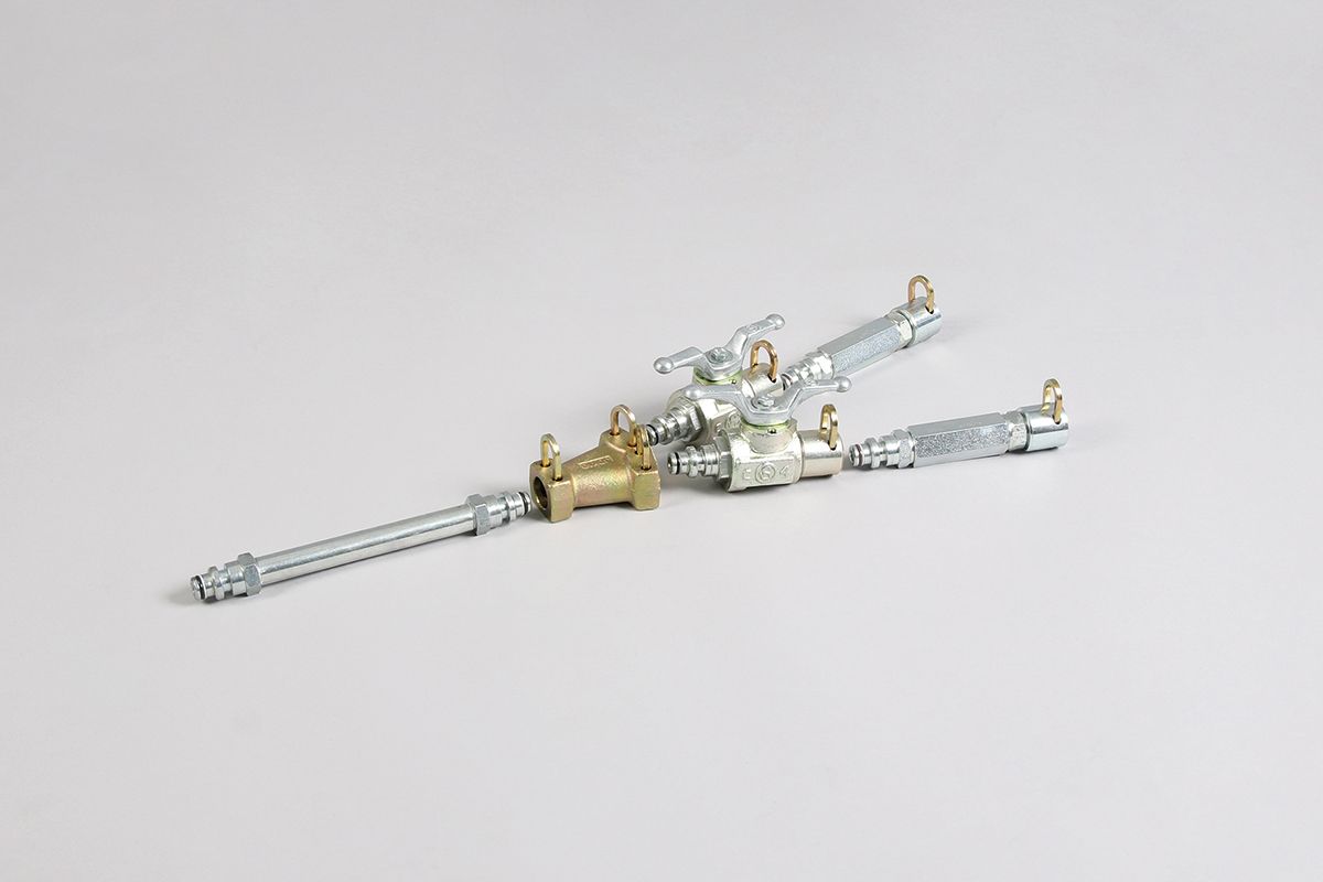 Das Steck-O Verbindungssystem dient dazu, Injektionsgeräte, Mischköpfe, Schläuche uvm. ohne den Einsatz von Gewinde- oder Flanscharmaturen miteinander zu verbinden. Einsetzbar ist das System im Hoch- und Niedrigdruckbereich.