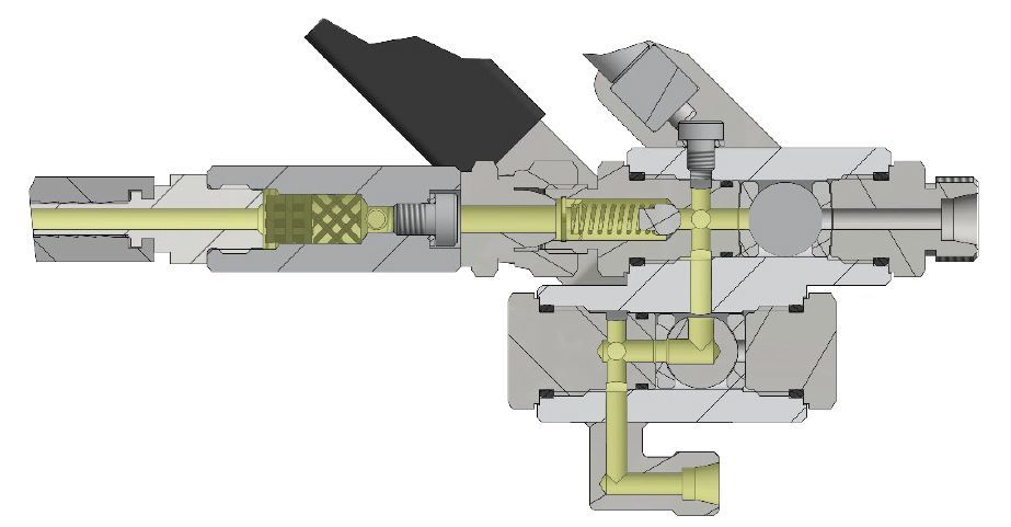 Der integrierte Spülanschluss reinigt den kompletten Mischkopf inkl. der Ventile.
