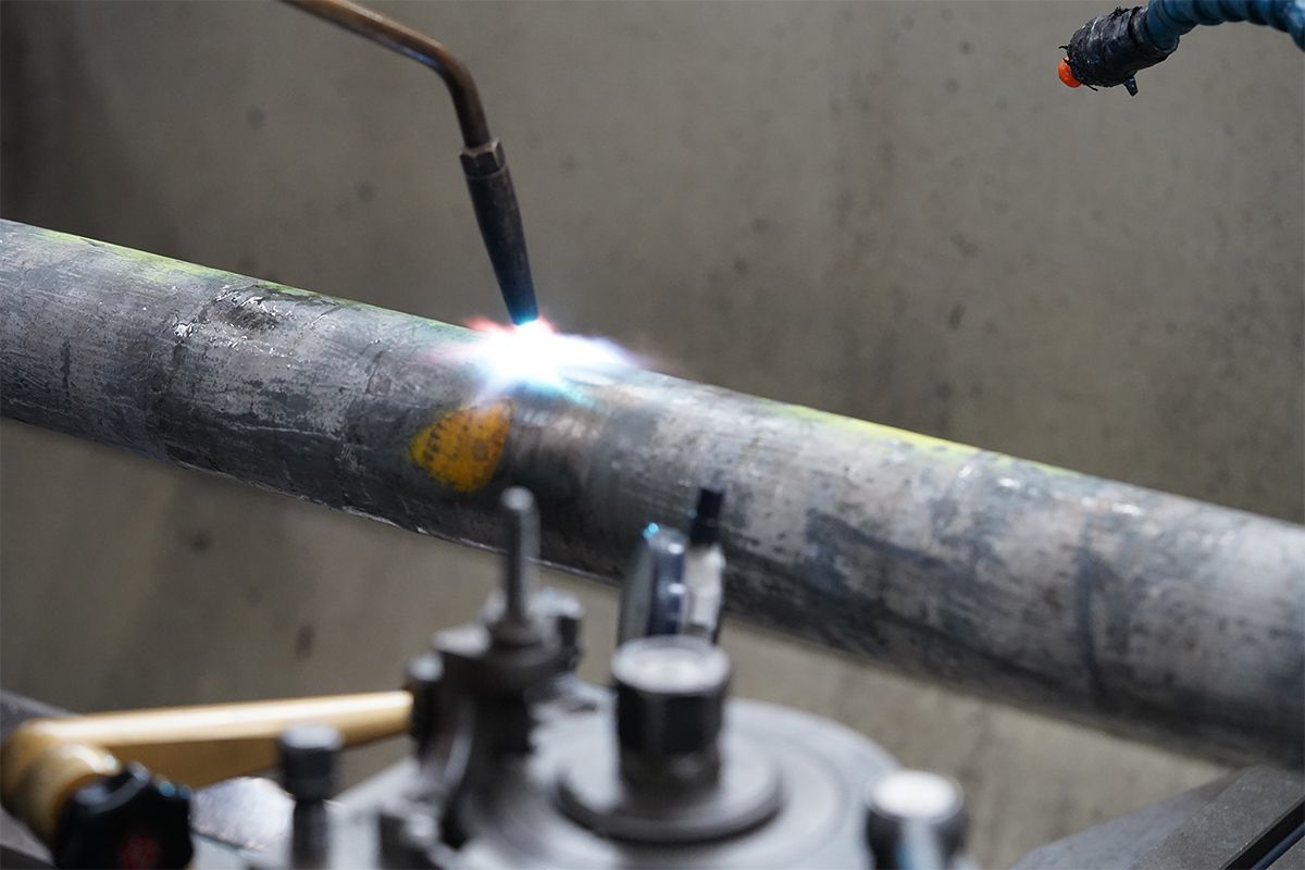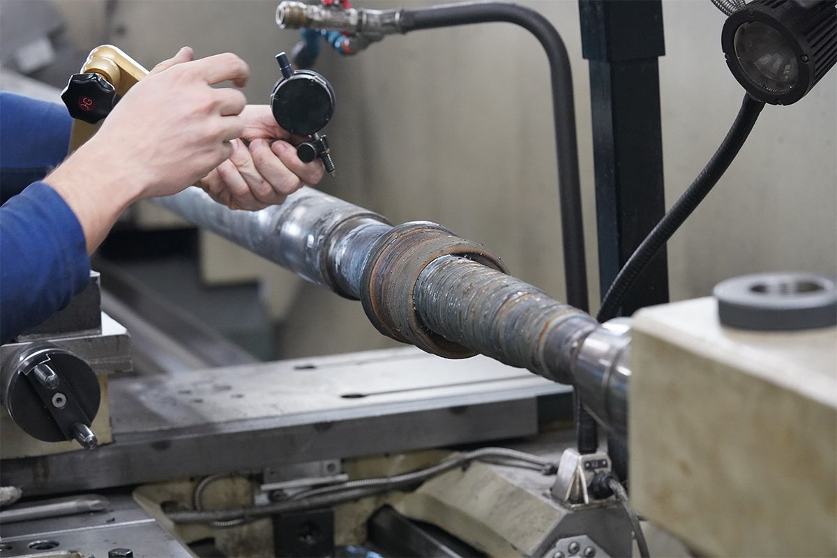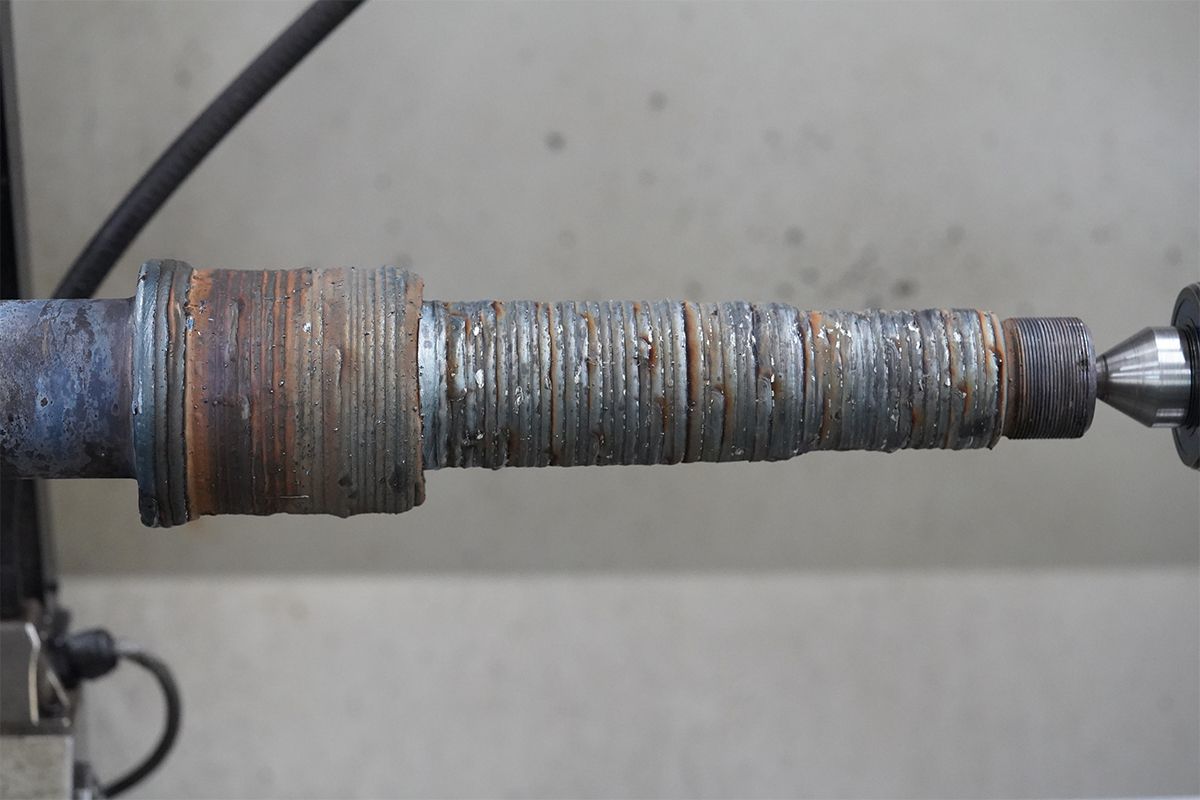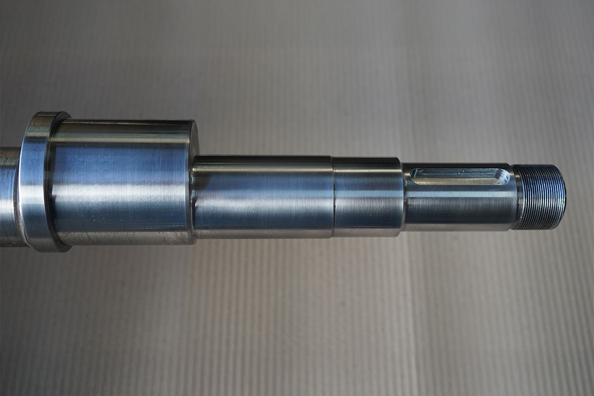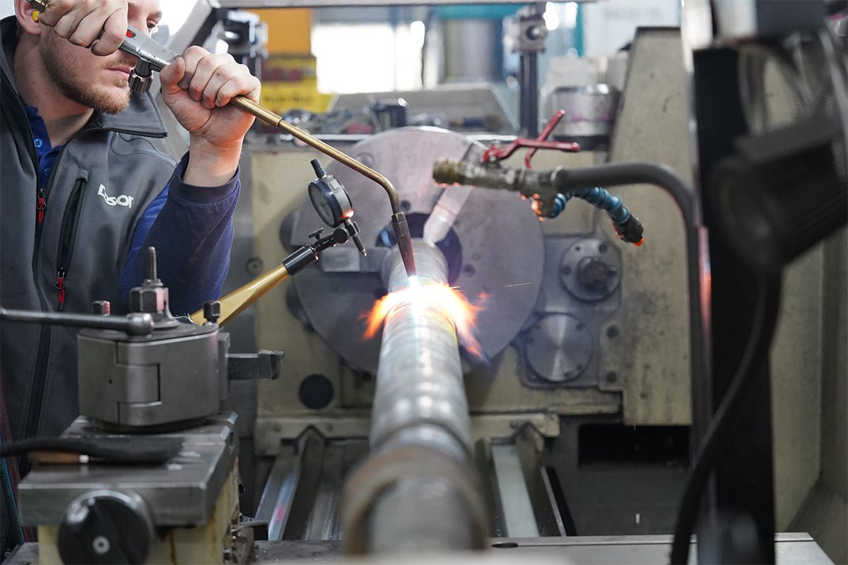 Die Welle wird flammgerichtet und anschließend maschinell bearbeitet.